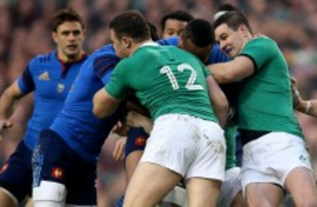 The defensive strategy is used regularly by Ireland and it involves two or more players tackling the area around the ball and holding the attacker up, thus winning a scrum for their side.