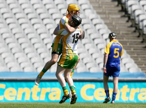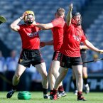 IT WAS CELEBRATION time today in Croke Park for the hurlers of Down, Donegal and Warwickshire.