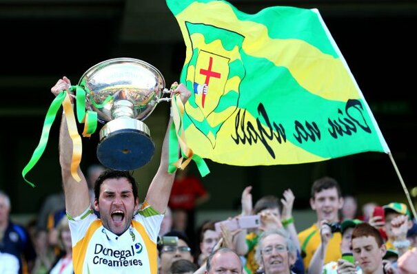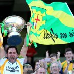 Joe Boyle lifts the Nicky Rackard Cup for Donegal