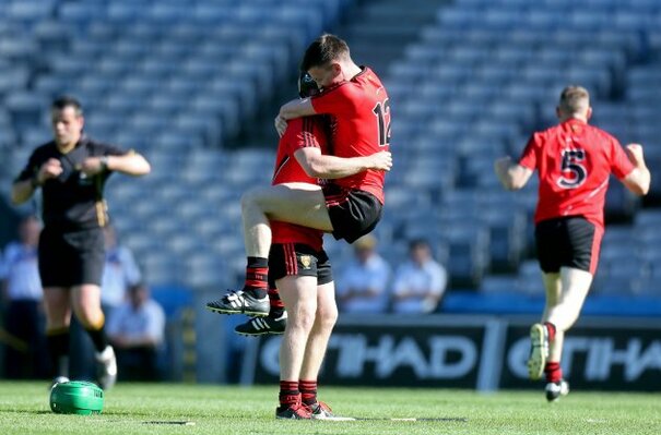 Stephen Ahern and Alan Morrissey celebrate near the end of the game