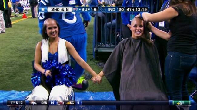 #Chuckstrong: Cheerleaders shave heads before Colts game