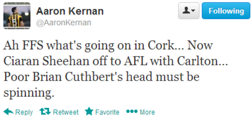13 Twitter reactions from GAA players to Ciaran Sheehan's AFL move