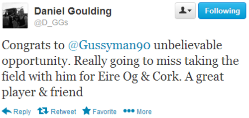 The news was revealed by TheScore.ie earlier today and several inter-county players have wished the Cork player well today ahead of his move.