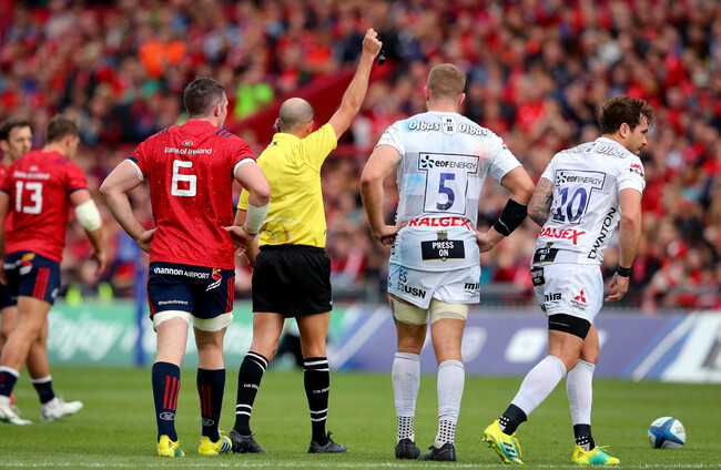 The number 10 was issued a red card 29 minutes into his side’s Heineken Champions Cup pool 2 loss to Munster on Saturday at Thomond Park.