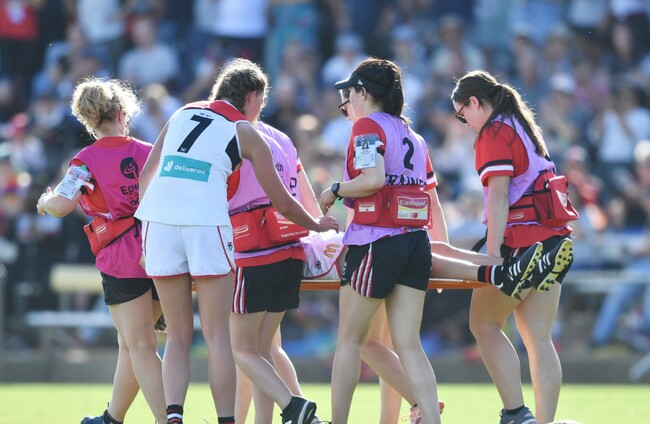AUSSIE RULES SIDE St Kilda have offered an update on Down star Clara Fitzpatrick after she was stretchered off during their clash with Adelaide Crows on Sunday.