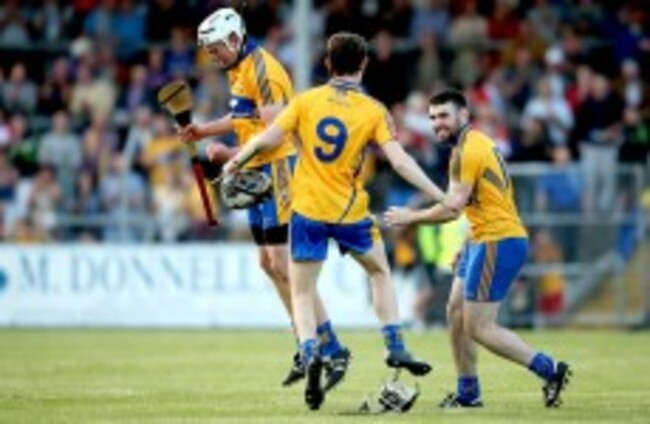 Clare captain Conor Cleary celebrates at the final whistle. James Crombie / INPHO