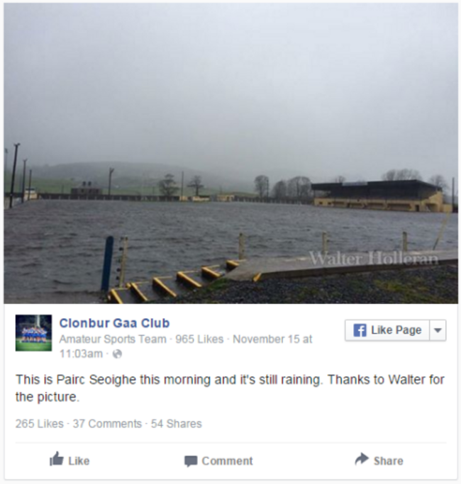 Clonbur GAA pitch unplayable storm desmond unplayable