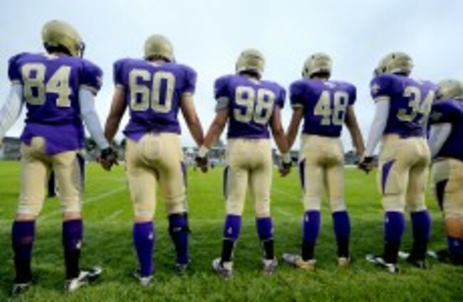 American football coach makes players hold hands after fight