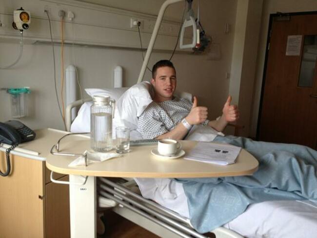 One of the unluckiest men in the GAA, Cork footballer Colm O’Neill, looked to be in good spirits today as he tweeted a pic from his hospital bed.