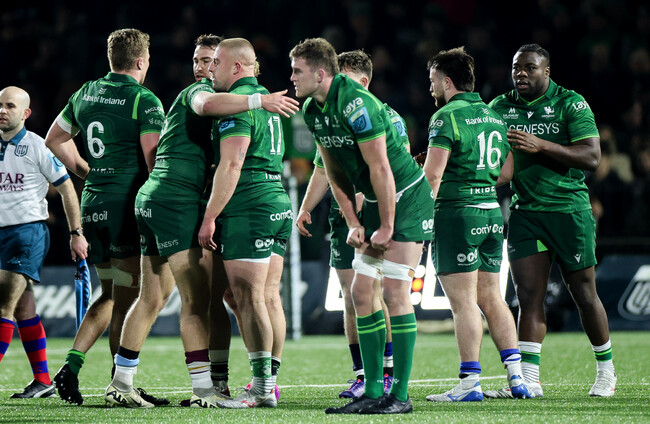 Connacht: Piers O’Conor (JJ Hanrahan 54); Shayne Bolton, Hugh Gavin, Cathal Forde, Chay Mullins (Santiago Codero 42); Josh Ioane, Ben Murphy (Matthew Devine 54), Peter Dooley (Jordan Duggan 54), Dave Heffernan (Dylan Tierney-Martin 61), Jack Aungier (Sam Illo 22-30, 61); Josh Murphy (Oisin Dowling 61), Joe Joyce; Cian Prendergast, Shamus Hurley-Langton, Paul Boyle (Sean Jansen 15-25).