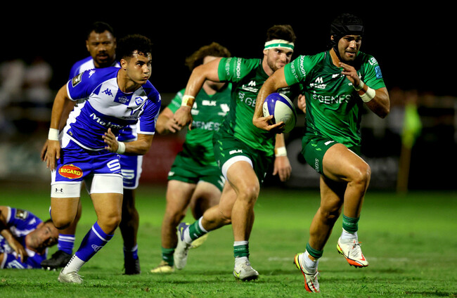 A close-range try from debutant Shamus Hurley-Langton – the first of his two on the night – briefly silenced the crowd on the half-hour. But Castres replied instantly a second time, winger Martin Laveau grabbing the ball at the restart and racing in unopposed. Connacht will have to tighten up, there.