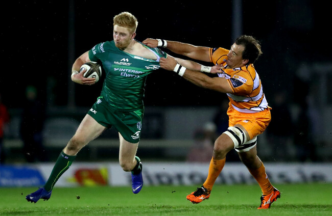 CONNACHT: Darragh Leader; Cian Kelleher, Thomas Farrell, Tom Daly (Kyle Godwin ‘73), Stephen Fitzgerald; Jack Carty, Caolin Blade (Kieran Marmion ’59), Denis Buckley (Peter McCabe ’62), Tom McCartney (Dave Heffernan ’56), Finlay Bealham (Dominic Robertson-McCoy ’62); Ultan Dillane (Cillian Gallagher ’73), James Cannon; Eoin McKeon (Paul Boyle ’56), Colby Fainga’a, Jarrad Butler (c).