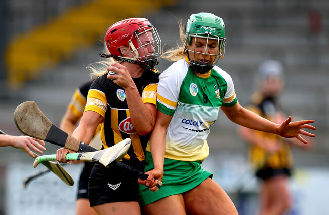 Kilkenny's Grace Walsh and Offaly's Roisin Egan. Ryan Byrne/INPHO
