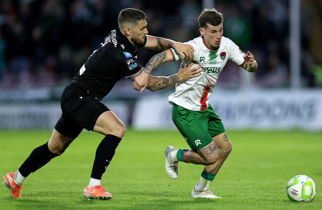 The crowd began to lift as a corner routine teed up Seán Murray outside the box and his dangerous shot deflected wide off the hand of Roberto Lopes. Play was brought back for a free-kick, which Cathal O’Sullivan guided around the wall but also around the post.