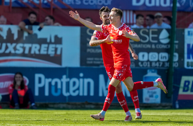 Shels thought they had a second after 25 minutes. Referee Neil Doyle didn’t spot the offside flag against Kelly, whose shot was cleared off the line by Kelleher, before Harry Wood fired into the net. His celebrations were soon cut short.
