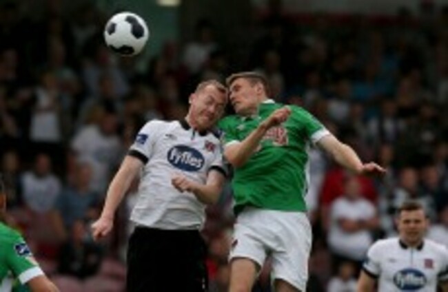 Chris Shileds of Dundalk with Garry Buckley of Cork battle for the ball. Donall Farmer/INPHO