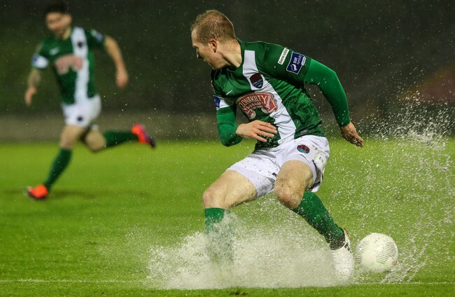 With plenty still left to do the former Derry City winger was unfazed by a puddle that stopped the ball virtually in its tracks, checking his run, and poking it into the bottom left-hand corner.