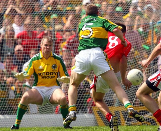 Donncha O’Connor and Colm Cooper found the net for their respective sides but it was Cooper who was celebrating at the end as Kerry won out by two points. Cork had a late goal chance but Derek Kavanagh was denied by the Kerry rearguard.