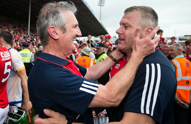 Cork players Anthony Nash and Damian Cahalane celebrate victory. Cathal Noonan / INPHO