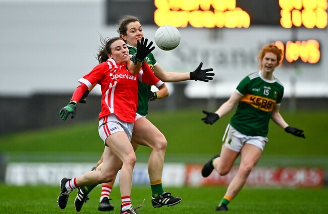 Cork managed to wrestle clear as Doireann O’Sullivan scored from distance following Ciara O’Sullivan’s good work, but both sides also left goal chances behind them. Andrea Murphy hit the side net for Kerry, and 60 seconds later Orlagh Farmer saw her shot crash off the crossbar at the other end.
