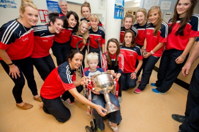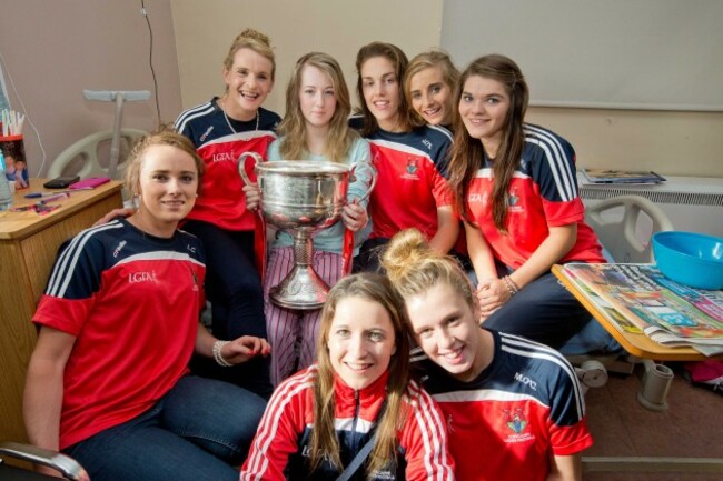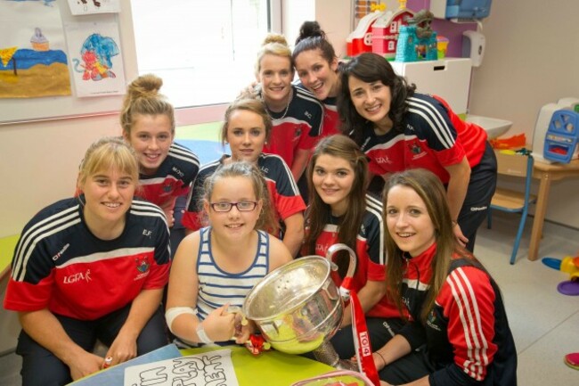 1. The victorious Cork team meet 12 year-old Ellie Byrne from Clondalkin