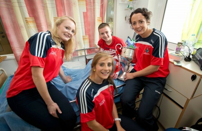 6. Cork players Geraldine O’Fllynn, Grace Kearney and Norita Kelly with Bebhinn Mernagh from Mallow and her parents Aidan and Edel