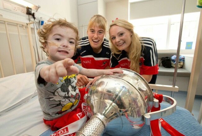 9. 4 year-old Nicholas Power from Sligo with Cork players Emma Farmer and Vera Foley