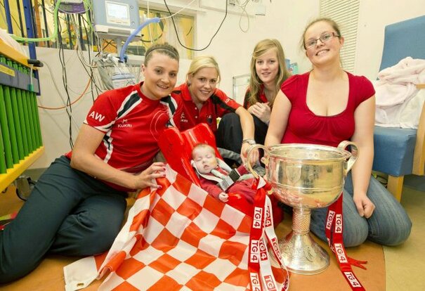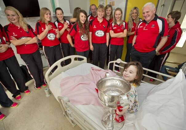 Young Cork fans in Crumlin Children's Hospital meet ladies football heroes