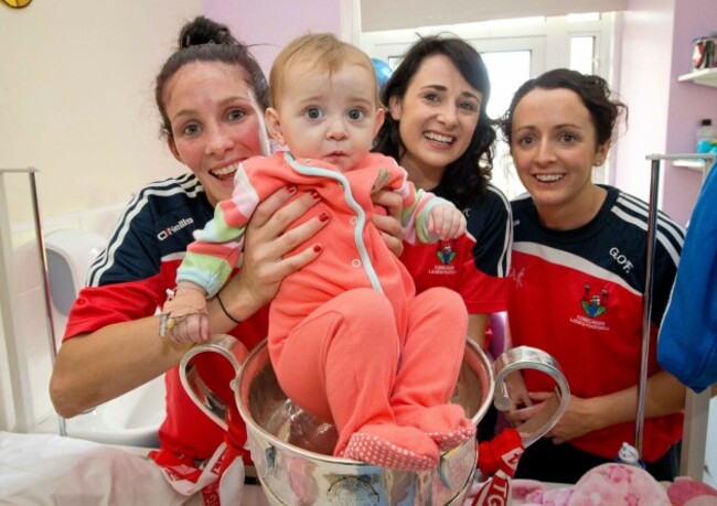 29. 11-month-old Fay Kerrigan-Bell got to sit in the Brendan Martin Cup and meet Cork players Grace Kearney, Norita Kelly and Geraldine O’Flynn.