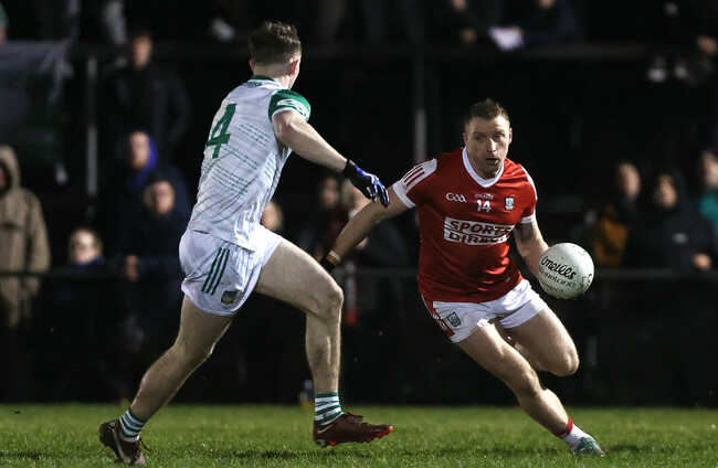 The big moment came in the 25th minute when Jack Ryan was fouled for a penalty by O’Driscoll as he chased Iain Corbett’s speculative pass across goal. Captain Corbett stepped up to send the ball past Mícheál Aodh Martin and when he added a trademark outside-of-the-boot point from the 45, the gap was back to one; 0-6 to 1-2.