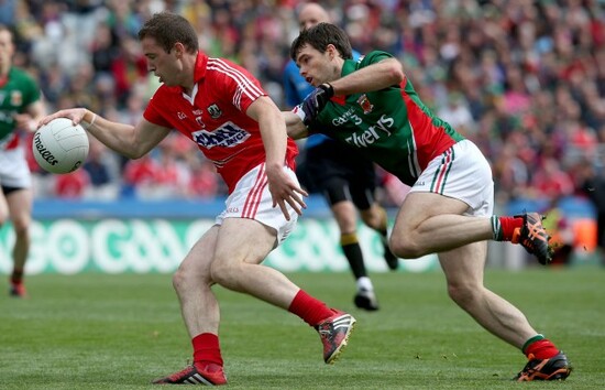 Mayo 0-9 Cork 0-8 38 mins – Andy Moran wins the ball and lays it off to Jason Doherty who points.