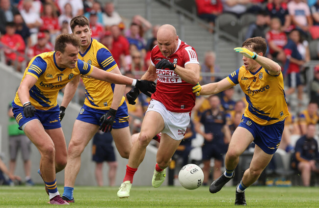 Roscommon were still four to the good by the 34th minute yet the initiative swung wildly in Cork’s direction before the break. They pressed up on Conor Carroll’s kickout to shift the tactical shape of the game and that yielded three points courtesy of a Steven Sherlock free, and efforts from play by Tommy Walsh and Matty Taylor.