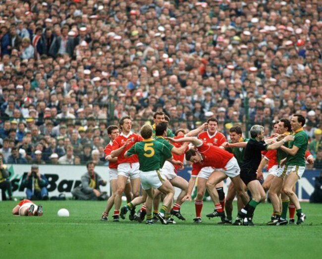 Cork’s Shay Fahy and Meath’s Joe Cassells at the centre of this 1989 fracas. The Royals were up there with The Undertaker and the cigire in many houses.