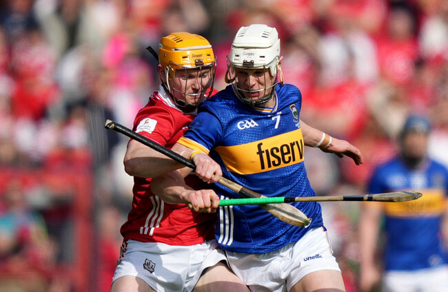 Jake Morris of Tipperary in action against Cork's Niall O'Leary. James Lawlor / INPHO