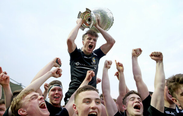 Tim Foley lifts the cup after Cistercian College Roscrea triumphed in 2015. Dan Sheridan / INPHO
