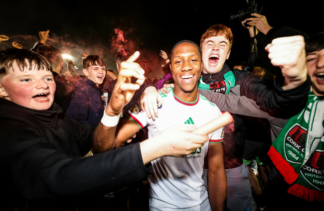 Cork’s Malik Duksteel celebrates his goal. Morgan Treacy / INPHO