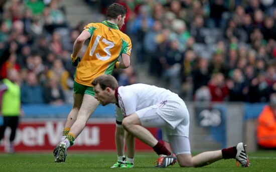 PENALTY TO SLAUGHTNEIL! Cormac O’Doherty taken down by Tom Healy…