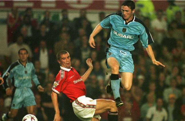 Robbie Keane in action for Coventry City against Manchester United's Roy Keane. Alamy Stock Photo