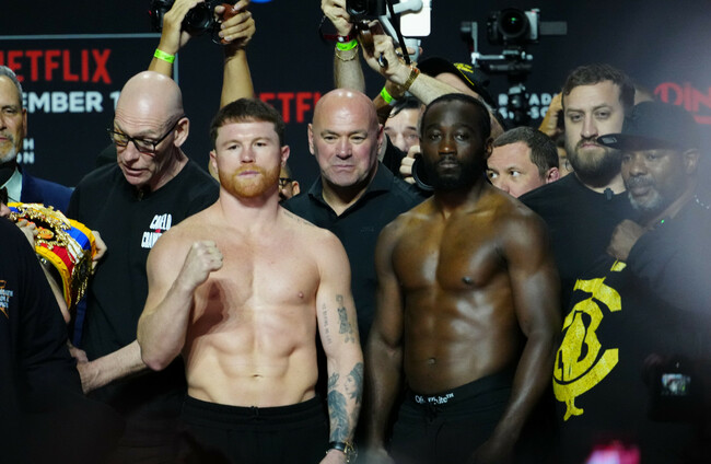 He weighed in at the same 167.5 pounds as Alvarez, a career high for Crawford, who had never fought above 147 pounds until last year when he weighed 153.5 in a unanimous decision victory over Israil Madrimov.