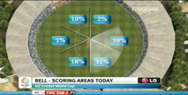 11.46am “250 arrives for England” as Strauss grins in the pavilion. Here’s Bell’s scoring areas, before that latest sortie: