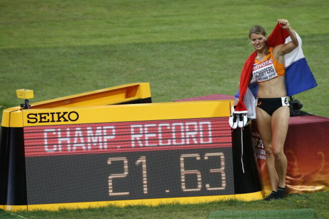 HOLLAND’S DAFNE SCHIPPERS ran the fastest women’s 200m time in almost 17 years to clinch gold in a thrilling world championship final.