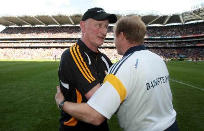 Brian Cody shakes hands with Declan Ryan after last year’s All-Ireland final. INPHO/Cathal Noonan