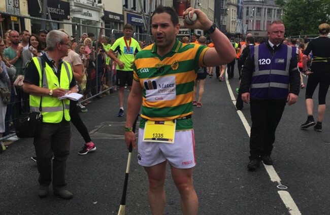 It was the 33-year-old’s eighth full marathon, but on this occasion he did so while soloing with a hurley and sliotar for the duration of the 26.2 mile course.