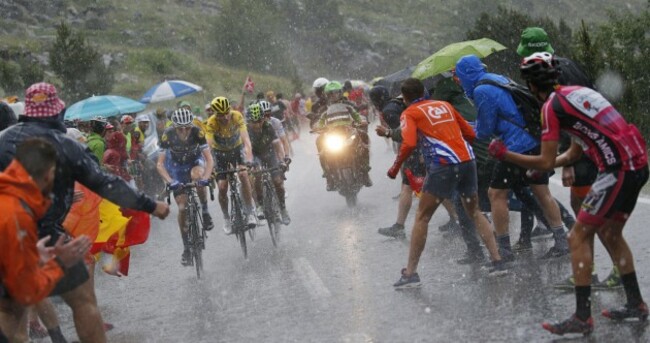 But the stage belonged to Dumoulin who broke free as the hailstones rained down on the final climb of the 184km stage. Portugal’s Rui Costa was his closest rival, following home 38 seconds later, while Poland’s Rafal Majka was third.