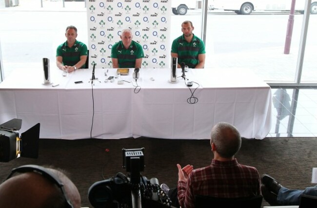 Mark Tainton, Mick Kearney and Dan Tuohy endure a gesticulating question from ace reporter Patrick McCarry. (©INPHO/Billy Stickland)