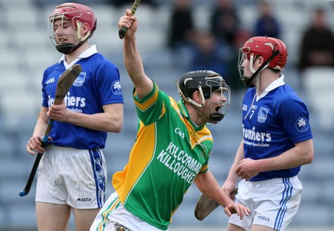 Kilcormac-Killoughey’s Dan Currams celebrates scoring a goal against Thurles Sarsfields.