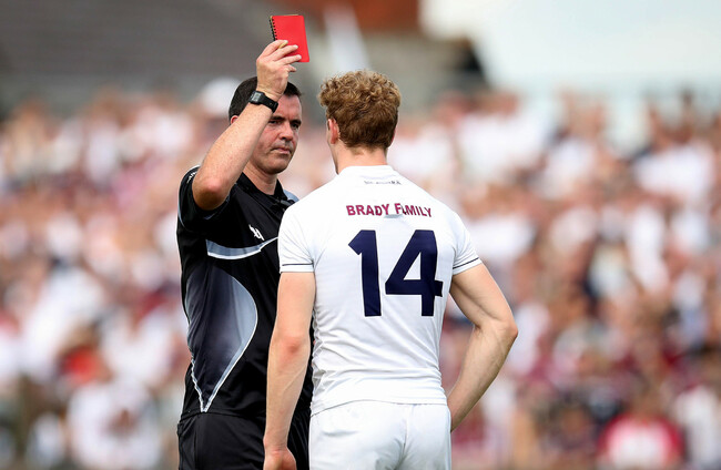 Referee Sean Hurson sent-off the Johnstownbridge forward after consulting with his linesman and O’Neill was not happy with the call, when speaking to The Sunday Game on RTÉ afterwards.