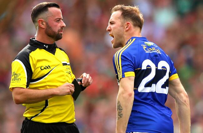 It made contending with defeat all the more difficult; his side had been beaten, sure, but O’Sullivan had been robbed of the opportunity to change the eventual outcome, unjustly as most perceived it. He inquired of Gough why he had been black-carded, but was cold-shouldered by the Meath referee.
