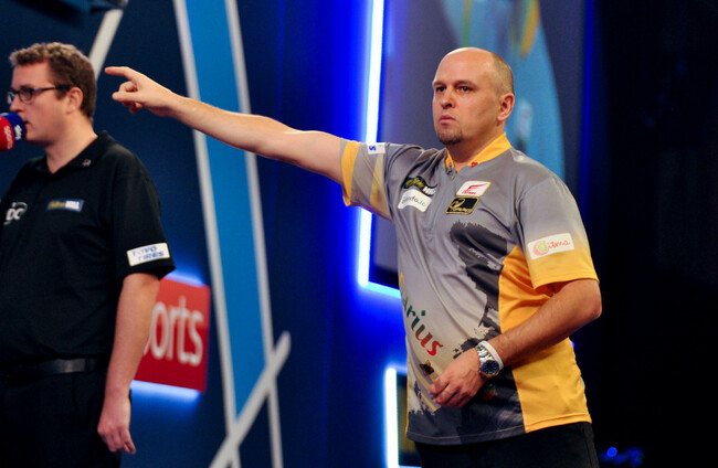 Van Gerwen did not have things all his own way, dropping the first set before losing the opening leg of the second, but he hit his straps thereafter, winning six successive legs to establish a 2-1 lead.