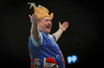 The colourful Evans is known for his festive shirts and walking out to ‘Merry Christmas Everyone’ by Shakin’ Stevens, and he took to the stage this time holding a Santa-dressed dancing toy.